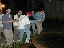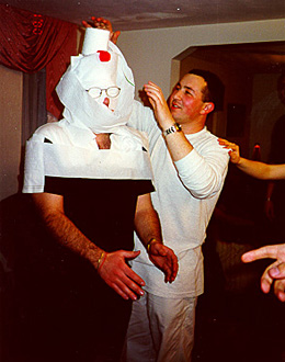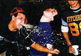 Welcome fellow brothers! The weekly meeting of Alcoholics Unanimous is now in full swing. I'd like to take a moment to explain the purpose and rules of this fine organization for all our new members and guests we have in attendance this evening. Alcoholics Unanimous is a collection of like-minded individuals, who believe in helping each other in their time of need. Alcohol is a tricky devil, and can ruin the lives of many people. We at Alcoholics Unanimous are here to help! Our weekly meetings will help you moderate and limit your drinking, allowing you to lead a normal life for the following week. Our meetings consist of sharing stories, dancing, contests, and various drinking games. Our fellowship has a twelve step program of personal recovery, which describes the experience of our earliest members. I will now list them for the new among us, and for those who have forgotten them from last week. I'm looking at you Marcus! 1. We admitted we were powerless over alcohol -- that our lives had become unmanageable. Seven days of drunken craziness was not a good way to live. 2. Came to believe that a power greater than ourselves could restore us to sanity. Phi Delta Delta, Alcoholics Unanimous' sponsor, had brought focus to our partying ways, giving us a clarity never felt before. 3. Made a decision to turn our will and our lives over to the care of the frat. Phi Delta Delta for life! 4. Made a searching and fearless moral inventory of ourselves, not including anything that happened more than three weeks back. 5. Admitted to the frat, to ourselves and to another human being the exact nature of our wrongs. If said human being was female, and led to some fine nooky, double points were awarded. 6. Were entirely ready to have the frat remove all these defects of character. Strict hazing guidelines were respected for such activities. 7. Humbly asked the frat to remove our shortcomings, and replace them with new ones that encourage blind devotion to the brotherhood. 8. Made a list of all persons we had harmed, and became willing to make amends to them all. This of course did not include locker stuffings from high school, but did include those whose shoes we had puked upon. 9. Made direct amends to such people wherever possible, except when to do so was overly embarrassing or inconvenient. 10. Continued to take personal inventory and when we were wrong, promptly place the blame somewhere else. 11. Sought through parties and skirt chasing to improve our conscious contact with the frat, and all frat activities. 12. Having had a spiritual awakening as the result of these steps, we tried to carry this message to other alcoholics and to practice these principles in all our affairs. Welcome everyone, and may our fellowship of drinkers allow you to lead a sober life all week, in the hopes of getting utterly plastered on the weekend! We will now commence our weekly meeting with the ceremonial passing of the beer bong! |